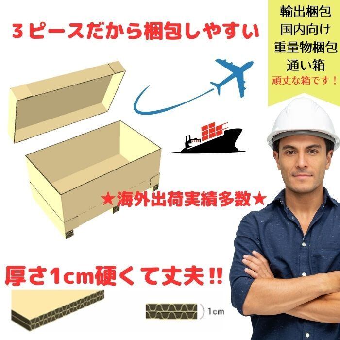ダンボールなので重さも軽く、扱いやすいです。輸出梱包に使えるだけでなく、通い箱にもぴったり。場所を取らず、使い回しもできるので、コストダウンにもなります。